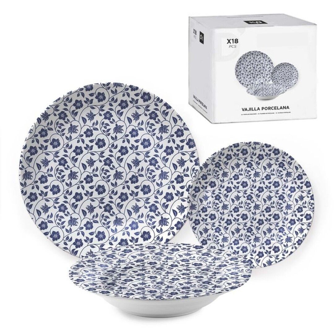 VAJILLA 18 PIEZAS FLOR AZUL